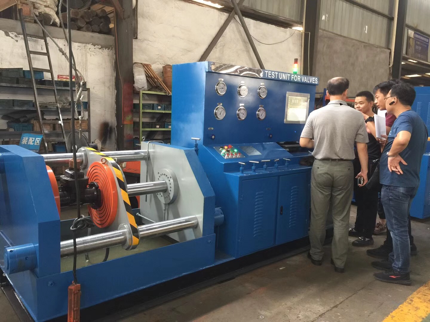 近日,美(mei)國(guo)亨利閥(fa)門(大連)公(gong)(gong)(gong)司(si)(si)總經(jing)理龍先生一行三人來(lai)浙江優(you)機公(gong)(gong)(gong)司(si)(si)查驗(yan)智能(neng)閥(fa)門試驗(yan)臺對(dui)該公(gong)(gong)(gong)司(si)(si)的軟密(mi)封閘閥(fa)性(xing)能(neng)測試進行現場驗(yan)收,一起來(lai)的還有公(gong)(gong)(gong)司(si)(si)采購代表宋(song)先生、生產部劉經(jing)理等人。本次查驗(yan)的設(she)備是7月份定制的JWT-Z400型頂壓式智能閥(fa)門測試臺,該產品是公司新型產品,擁有兩項技術發明技術知識產權,也亨利公司第二次采購浙江優機的閥門試驗設備產品,由于操控性能精確度高技術要求完全代替歐美同類產品, 因此亨(heng)利(li)公司設備技(ji)術總監宋先生再(zai)次采購該(gai)機型(xing),給美國(guo)在(zai)中國(guo)的(de)生產線(xian)分廠(chang)替代老(lao)化(hua)的(de)進(jin)口舊閥門(men)測試臺(tai)。獲悉(xi),經過多(duo)年的(de)創新和(he)摸索浙江優機公司各大系列產品性能和(he)人性化(hua)設計不斷改良,該(gai)公司技(ji)術研發部已經申報發明技(ji)術專利(li)多(duo)項,2018年有四項產品(pin)通過浙江省工(gong)業(ye)新產品(pin)鑒定,是省市級(ji)科技型企(qi)業(ye).秉持生產重細節,售(shou)后重反饋,各(ge)種機械(xie)性能指(zhi)標日益成熟(shu),出口市場有東(dong)南亞市場為主逐漸轉向歐美中高端市場,逐步成為國(guo)內外知名專業制造商之一。