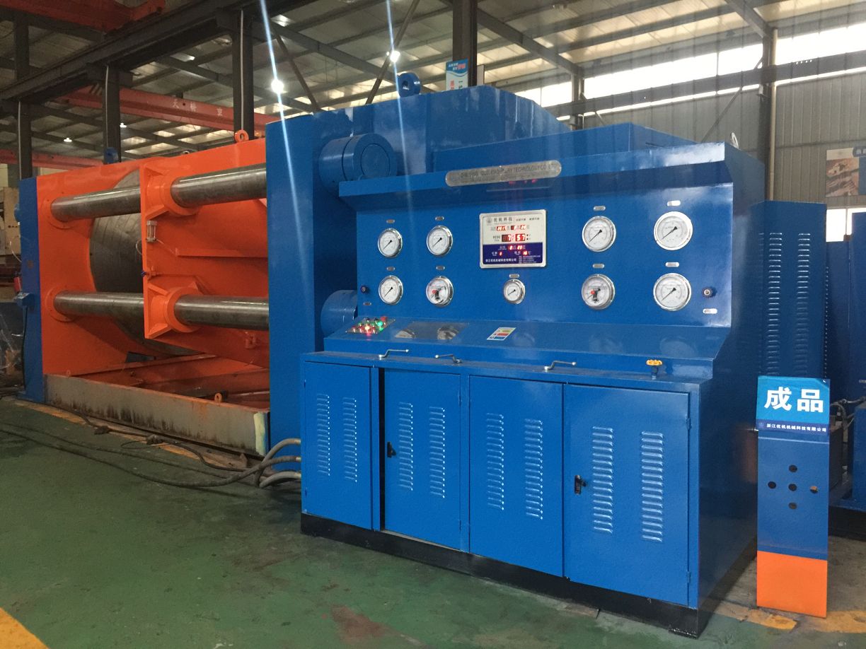 JWT-1200大口徑全焊接球閥試驗臺是頂壓式液壓試驗臺是我公司吸取 了國內外同類產品技術精華,自主研發的新一代頂壓式液壓閥門測試臺并擁有國家技術專利知識產權,專利號ZL2016 1 0240324.1,解決了大型全焊接球閥壓力試驗困難、原始試壓不規范和測試過程的安全隱患問題。它具有結構緊湊,功能完善,性能穩定,操作方便等特點。液壓系統采用了卸荷保 壓功能,在連續開機 50 小時條件下,液壓油溫升低于 35℃,節省了測試過程的 能源消耗并提高了設備使用壽命,是其它同類產品所無法比擬的。JWT型大口徑全焊接閥門測試臺可以廣泛適用于閥門生產廠家、全焊接球閥用戶熱力公司、城網管道工程公司、天然氣管道工程公司等大口徑焊接式法蘭式閥門的殼體強度和密封性能試驗,試 驗壓力介質為水、氣、油均可。試驗的方式完全符合 GB/T13927-92《通用閥門 壓力試驗》和 JB/T9092-1999《閥門的檢測與試驗》以及 API 598 和 API 6D 的標準 規范要求。
